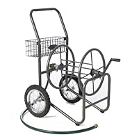 Residential 250' Two Wheel Hose Reel Cart Protect Your Garden Hose Here is a two wheel, industrial/commercial grade hose reel cart sure to help your watering projects go faster and easier. This model is effortless to use as the reel lets you pull out as much hose as needed, then smoothly winds it back in place. It is made of tough 13 gauge steel and now features a steel Utility Basket for essentials. Features: Holds up to 250' of 5/8" hose All Brass/Galvanized Fixtures Low Center of gravity prevents tipping 13 Gauge Steel Construction Hose and Nozzle not included Ships Quickly!